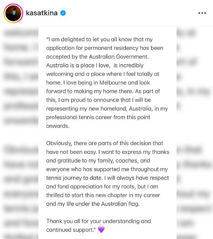 达利亚·卡萨金娜的转籍决定绝非一时冲动,而是多重成分交汇下的追究摄取。这位曾被誉为"俄罗斯网球新女王"的选手在声明中强调了对澳大利亚"温和好客"环境的向往,特等抒发了对墨尔本的喜爱与假寓意愿。当作工作网球默契员,试验与比赛环境的摄取至关迫切。澳大利亚不仅领有宇宙一流的网球圭表和赛事体系(包括澳网这一大满贯赛事),其柔和的征象条目也更恰当全年试验。从地说念的工作发展角度看,转籍无疑为卡萨金娜提供了更踏实的竞技平台。